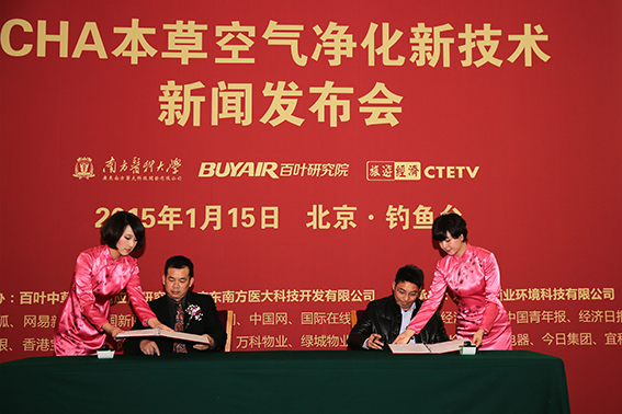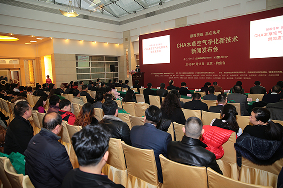 2015年元月15日,嚴冬的北京,霧霾彌漫,陣陣寒意,北京釣魚臺國賓館俱樂部陽光大廳里卻暖意濃濃,氣氛熱烈,下午三點,“CHA本草空氣凈化技術新聞發(fā)布會”在歡聲笑語中開幕。來自衛(wèi)生、環(huán)保、工商、社保、金融、文化等多個部門的領導和全國各地空氣凈化行業(yè)的嘉賓,以及北京30多家媒體記者120余人齊聚一堂,共同見證CHA本草空氣凈化技術的誕生。
