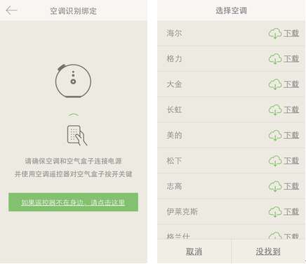 手動模式為用戶快速綁定空調和凈化器,提供了另一解決方案。當遙控器不在身邊時,只需打開空氣盒子APP客戶端,點擊頁面圓形操控中心,選擇手動模式, 按照提示,便可快速的進行空調、空氣凈化器與空氣盒子的綁定,輕松實現智能操控。