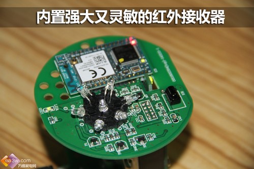 這就是空氣盒子的內部構造圖,里面有眾多的電子元件組成,并且其圓球中心位置為一個靈敏的空氣檢測裝置,能夠準確的檢測出室內空氣的健康情況,為用戶及時的推送相關信息。在空氣盒子的最上端,有著多個敏感的紅外接收發器,為其控制空調以及空氣凈化器提供充足條件。
